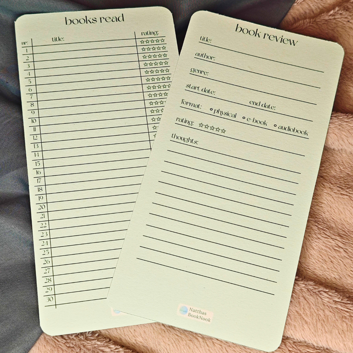 Läslistan är väldigt smidig för att minnas vilka böcker som du läst senaste tiden med betyg, de är dubbelsidiga - så totalt 60 böcker får plats.