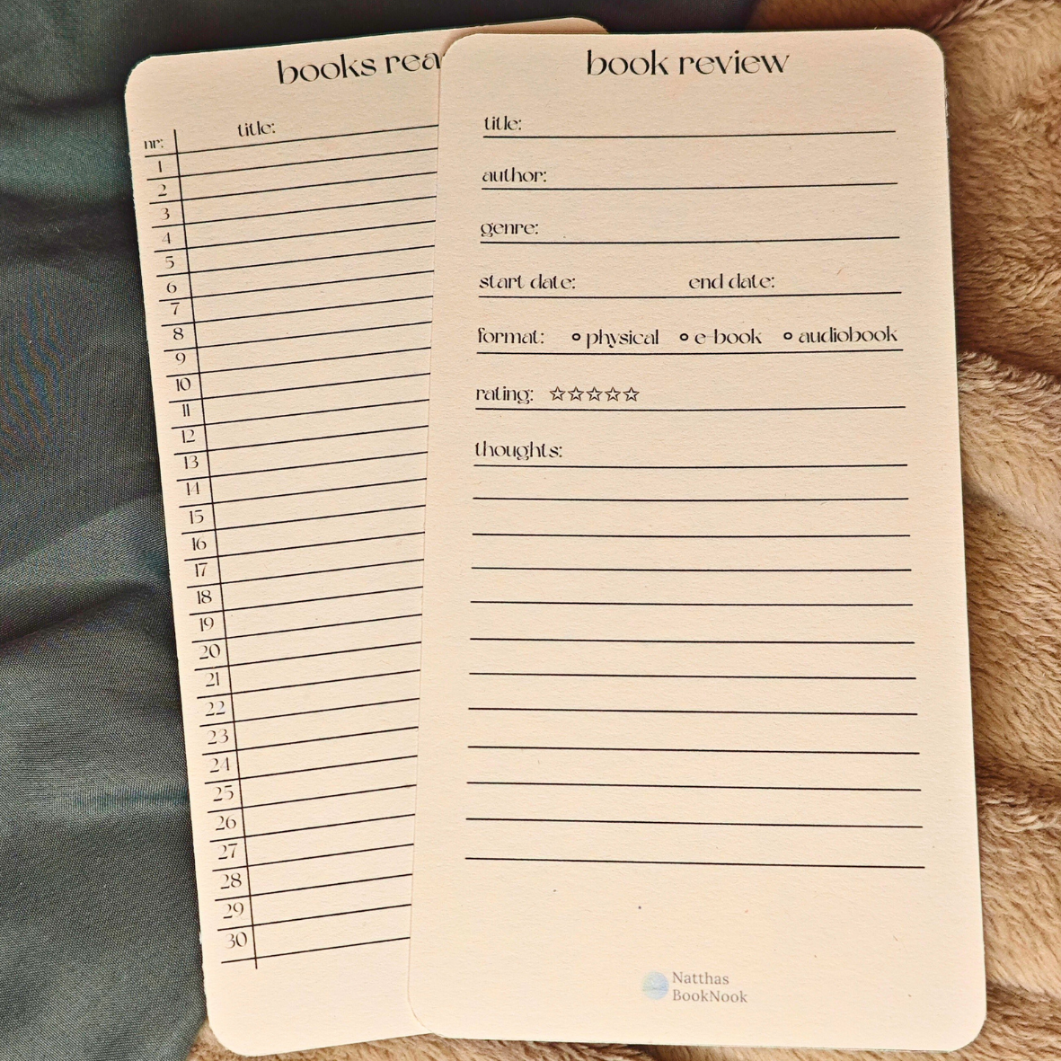 Läslistan är väldigt smidig för att minnas vilka böcker som du läst senaste tiden med betyg, de är dubbelsidiga - så totalt 60 böcker får plats.